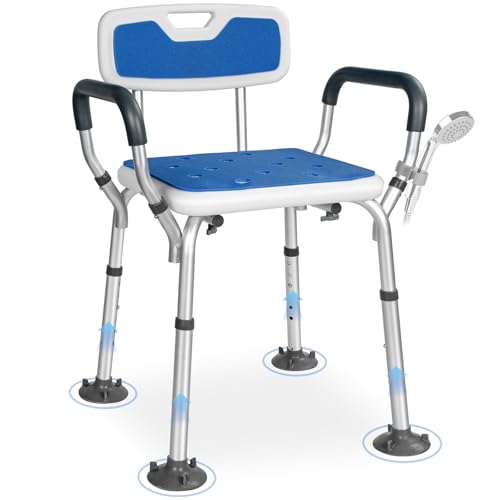 「大吸盤 シャワーチェア お風呂椅子 介護用 6段階高さ調節可能 背もたれ付き 手すり 取り外し可能 アルミ合金フレーム 軽量 丈夫 シャワー用」