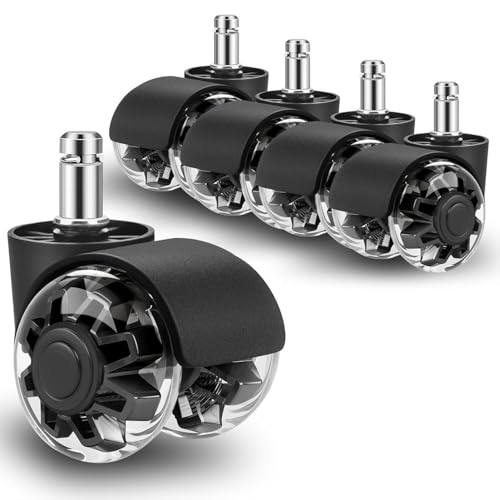 ・高い許容荷重:イス キャスター の耐荷重:90kg/1個、安心な座り心地です。5個セットの最大重量450キロまで耐えることができます。360度回転丸キャスター可能、スムーズに回転、騒音が無しです。