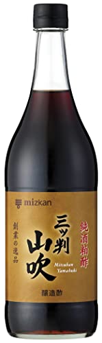 ・メーカー名: ミツカン商品紹介 純酒粕酢三ツ判山吹は永い伝統を受け継ぐ贅をつくしたお酢です。 熟成させた酒粕だけを仕込み、江戸時代からの伝統製法を生かして、ゆっくりと時間をかけて造り上げました。 飴色の深い色あいから赤酢と呼ばれ、芳醇でまろやかな味わいです。 お酢に充分うまみがありますので、砂糖、塩、しょうゆをひかえめにお使いください。 赤シャリのお寿司(すし)、酢の物などにお使いいただけます。 原材料・成分 酒かす(国内製造)