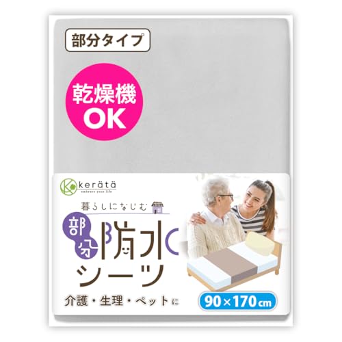 「(ケラッタ) 防水シーツ 介護 部分用 90×170cm しっかり巻き込めてズレ防止 乾燥機対応 綿100% 抗菌 防ダニ (e グレー)」