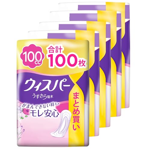 WHISPER ウィスパー うすさら吸水 100cc 100枚 (20枚×5パック) (尿漏れパッド 尿とりパッド 女性用)中量用