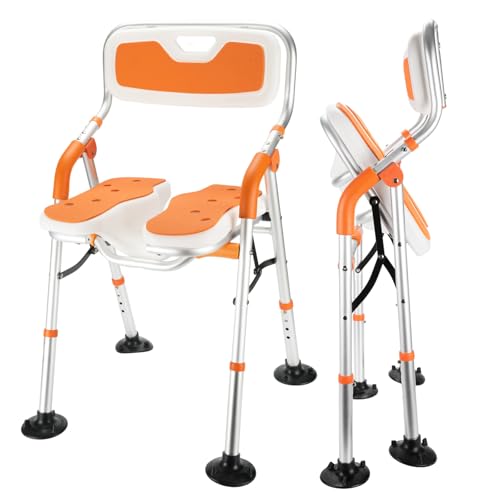 「お風呂椅子 介護用 折りたたみ 介護 風呂 椅子 U型溝座面 耐荷重150kg シャワーチェア 折り畳み 高さ4段階調節 シャワーチェアー 背も」