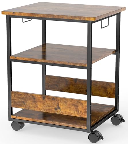 「W60*D50*H70cmプリンター台 キャスター付き パソコンラック 中棚高さ9段階調節 両側取っ手付き pcワゴン オーディオラック デスク」