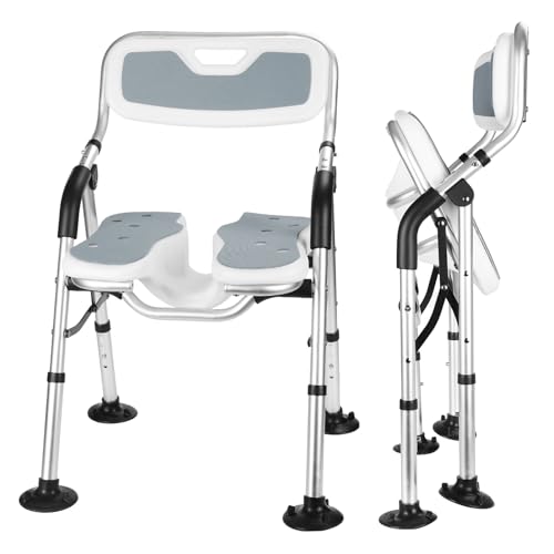 「お風呂椅子 介護用 折りたたみ 介護 風呂 椅子 U型溝座面 耐荷重150kg シャワーチェア 折り畳み 高さ4段階調節 シャワーチェアー 背も」