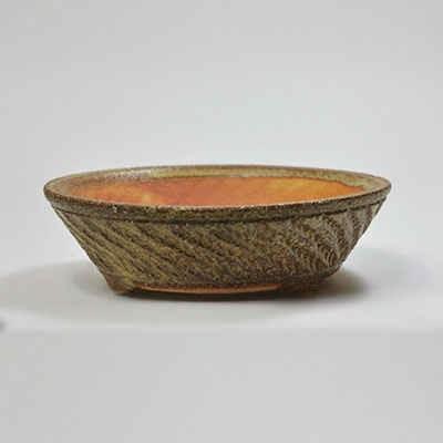斜めに入った模様が引き締まった印象をあたえる鉢です。やわらかな色合いで優しい雰囲気に。足の部分が猫の脚に似ていてとてもキュートです。6号サイズもございます。 幅15cm×奥行き15cm×高さ4.5cm