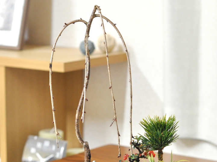 存在感のある枝垂れ桜と松竹梅の贅沢な寄植え