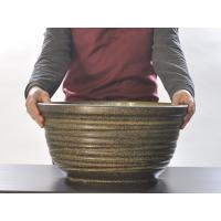 温かい雰囲気の窯肌色です。 [睡蓮鉢 めだか鉢]窯肌ひねり水鉢 13号サイズ