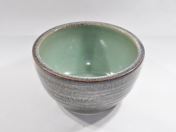 落ち着いた印象の中に涼を感じる陶器鉢です。内側の緑とあいまって爽やかな雰囲気。