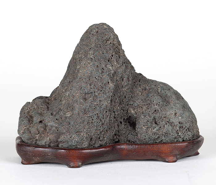 水石 「八瀬巣立真黒石」 加茂川石 盆石 天然石 観賞石 山水石 すいせき 4号 11cm 台座付き 現品限り