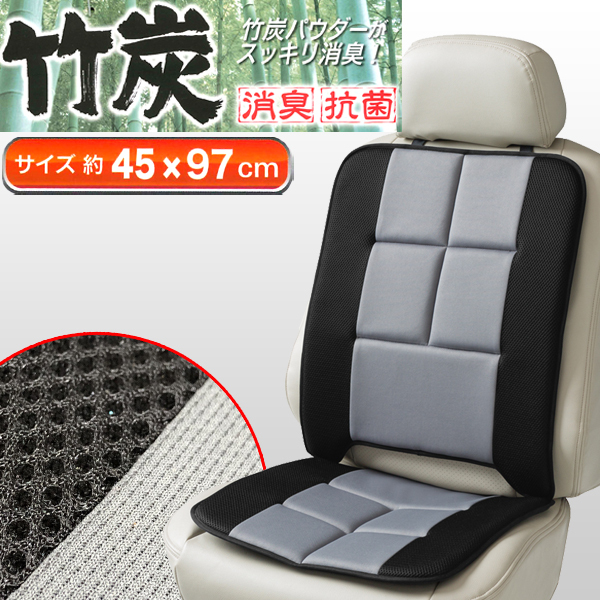 座席カバー 背マット シートカバー ダブル クッション 竹炭パウダー 消臭 抗菌 メッシュ 竹炭プレーン ストッパー付 約45×97cm グレー 1枚 534007