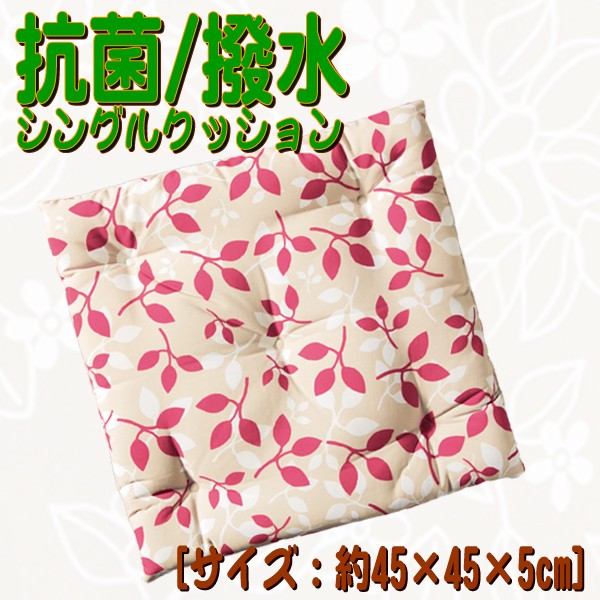 | ☆「リーフスタイル」 ☆シングルクッション[約45×45cm] ☆レッド[RD] | | 撥水加工で汚れが付きにくい! | ◇大垣産業 BONFORM ◇品質/(表地):ポリエステル[※撥水加工] (中材):ポリエステル・ウレタンフォーム (裏地):ポリエステル | | | | | | | | | | | <ご注意下さい> ※直射日光が当たる部分は長期間のご使用によりカバーが変色する場合がございます。 ※色合に付きましては、お使いのモニターにより若干異なる場合があります。 ※柄生地及び撥水加工布は片面のみとなります。