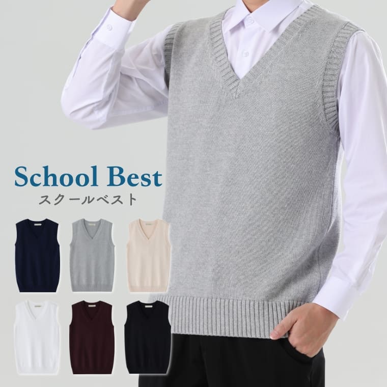 メンズベスト スクールベスト正統派 制服 高校 通学 学生 中学 Vネック 無地 綿100% DK0014