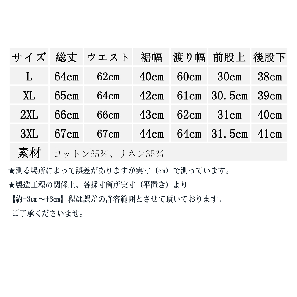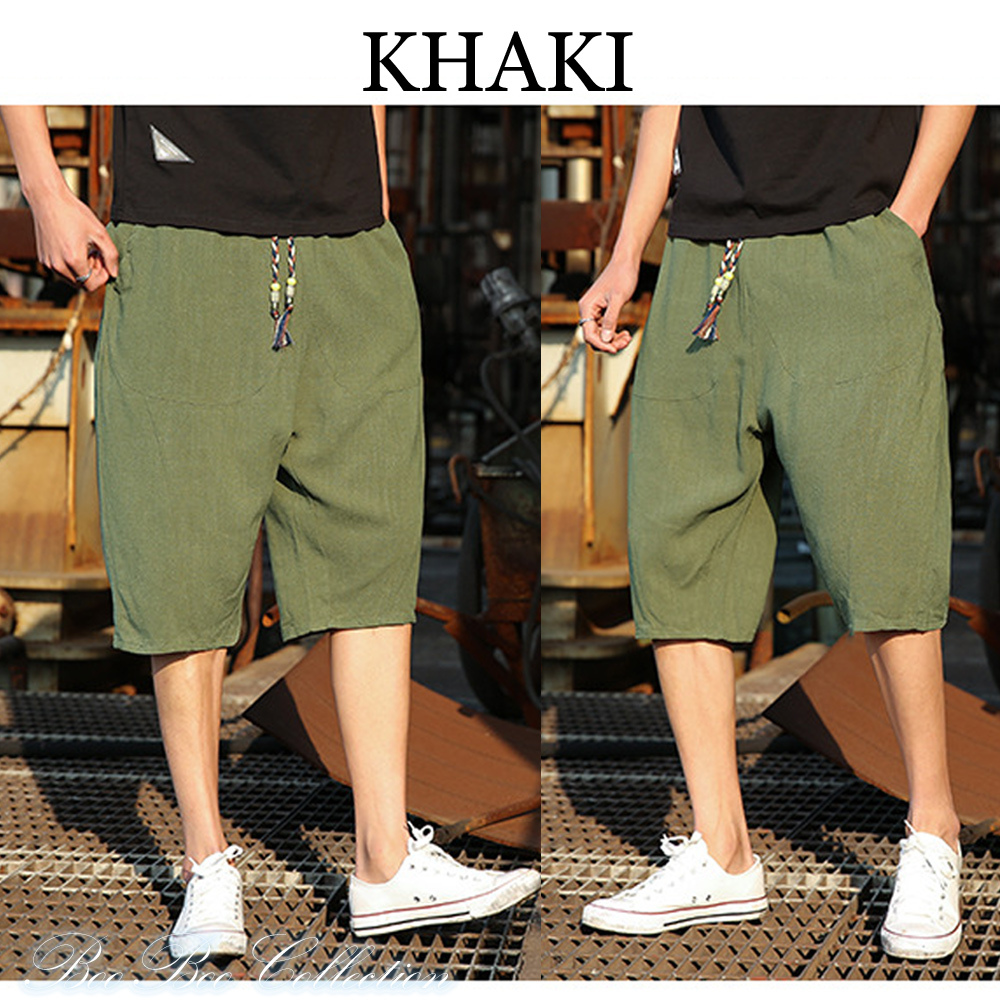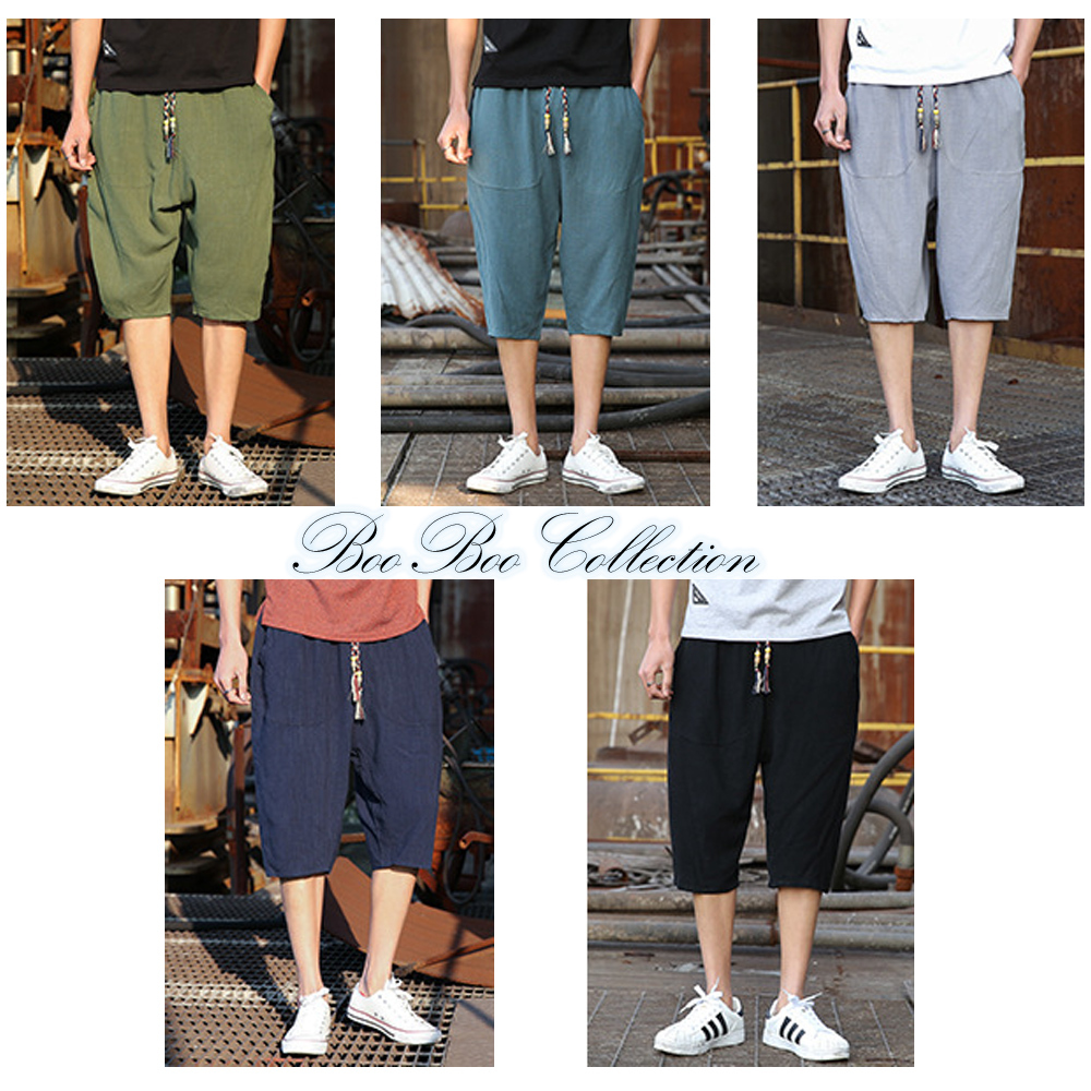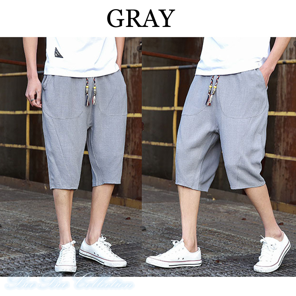 サルエルパンツ メンズ ボトムス 七分丈 綿麻ワイドパンツ ハロンパンツ ゆったり ハーフパンツ dk0024