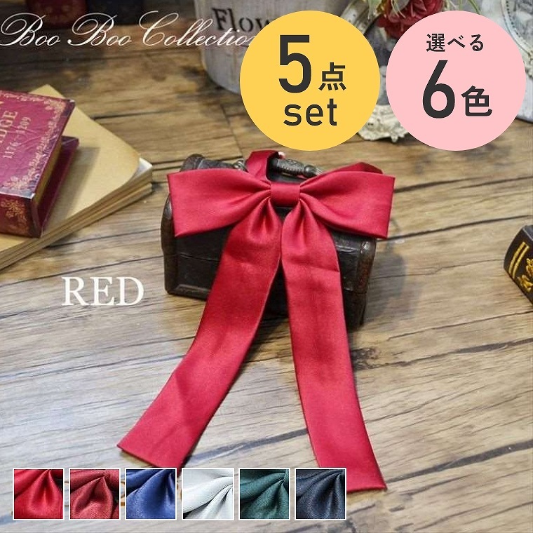 【5点セット】 スクールリボン 学生服 制服 女子高生 通学 学生 中学 リボン アジャスター付き 楽々 ワンタッチ装着 女子 高校 入学 卒業式 無地