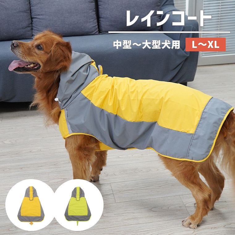 レインコート 小型犬 中型犬 【L〜XLサイズ】 レインウエア 雨具 カッパ ドッグウェア 犬 イヌ 犬服 ペット用品 ポンチョ 防水 アウトドア ペット お散歩 散歩 グリーン イエロー シンプル 軽量 フード付き ウィンドブレーカー おしゃれ 着せやすい 梅雨 アウター