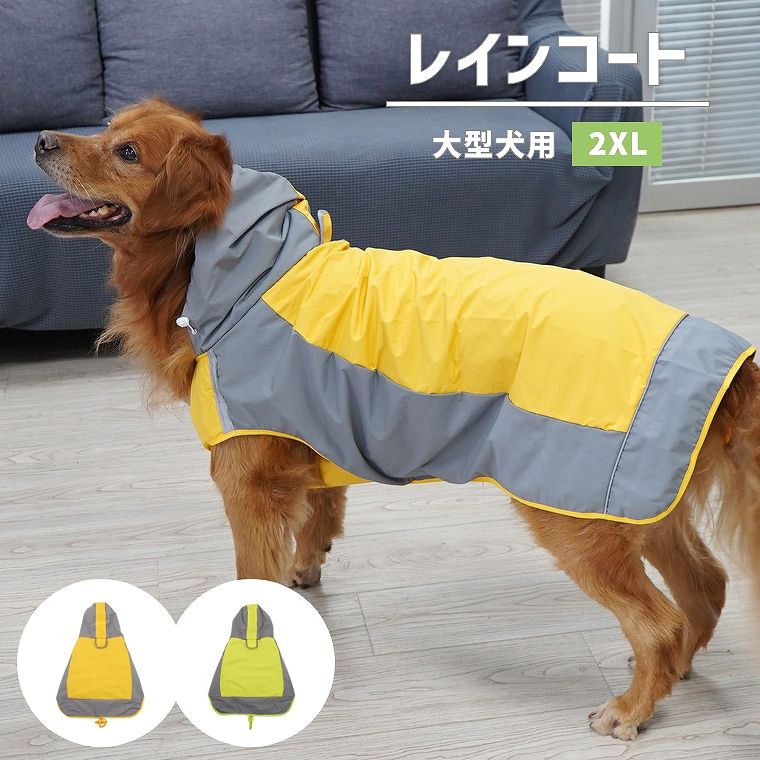 レインコート 小型犬 中型犬 【2XLサイズ】 レインウエア 雨具 カッパ ドッグウェア 犬 イヌ 犬服 ペット用品 ポンチョ 防水 アウトドア ペット お散歩 散歩 グリーン イエロー シンプル 軽量 フード付き ウィンドブレーカー おしゃれ 着せやすい 梅雨 アウター