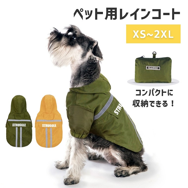 レインコート 小型犬 中型犬 XS〜XXLサイズ レインウエア 雨具 カッパ ドッグウェア 犬 イヌ 犬服 ペット用品 ポンチョ 防水 アウトドア ペット お散歩 散歩 グリーン イエロー シンプル 軽量 フード付き ウィンドブレーカー おしゃれ 着せやすい 梅雨 アウター