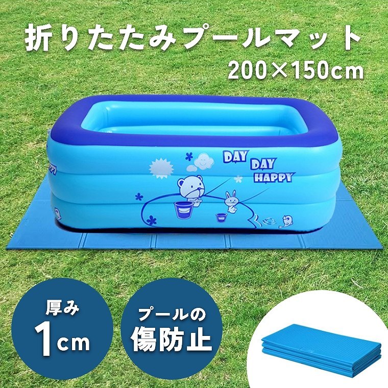 プールマット ビニールプール用 折りたたみ 200×150cm 厚み1cm 滑り止め 厚手 プール下シート ビニールプール用シート プール敷シート プールシート