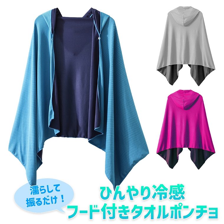 冷感 タオル フード付き 大きい 冷感アイテム 冷感ポンチョ 熱中症対策 ひんやりタオル 振るだけ 冷感 男性 クールタオル UVカット 濡らす 振る 速乾