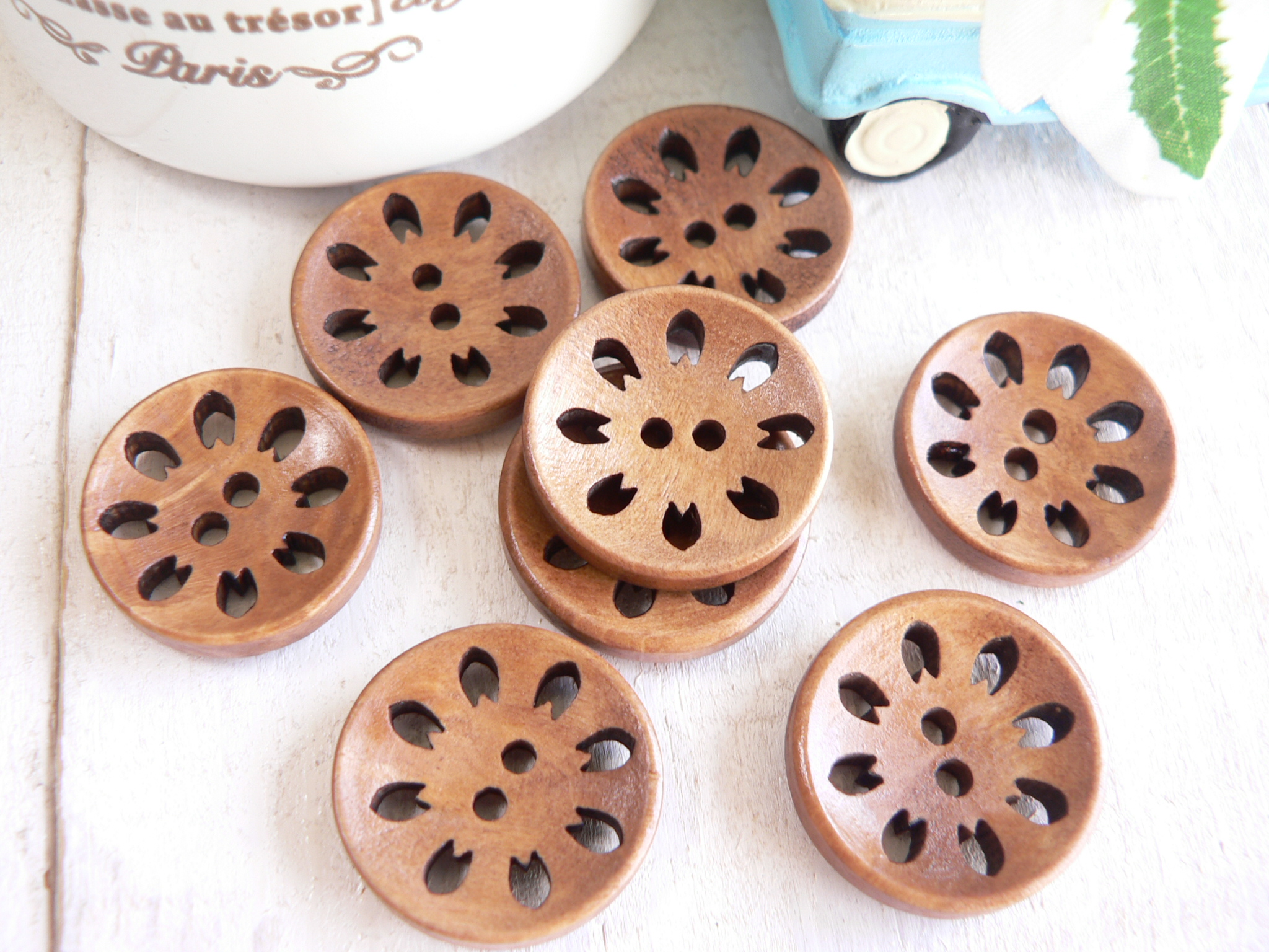 ボタン 透かし 18mm 木のボタン ウッド 手芸 8個 #1310