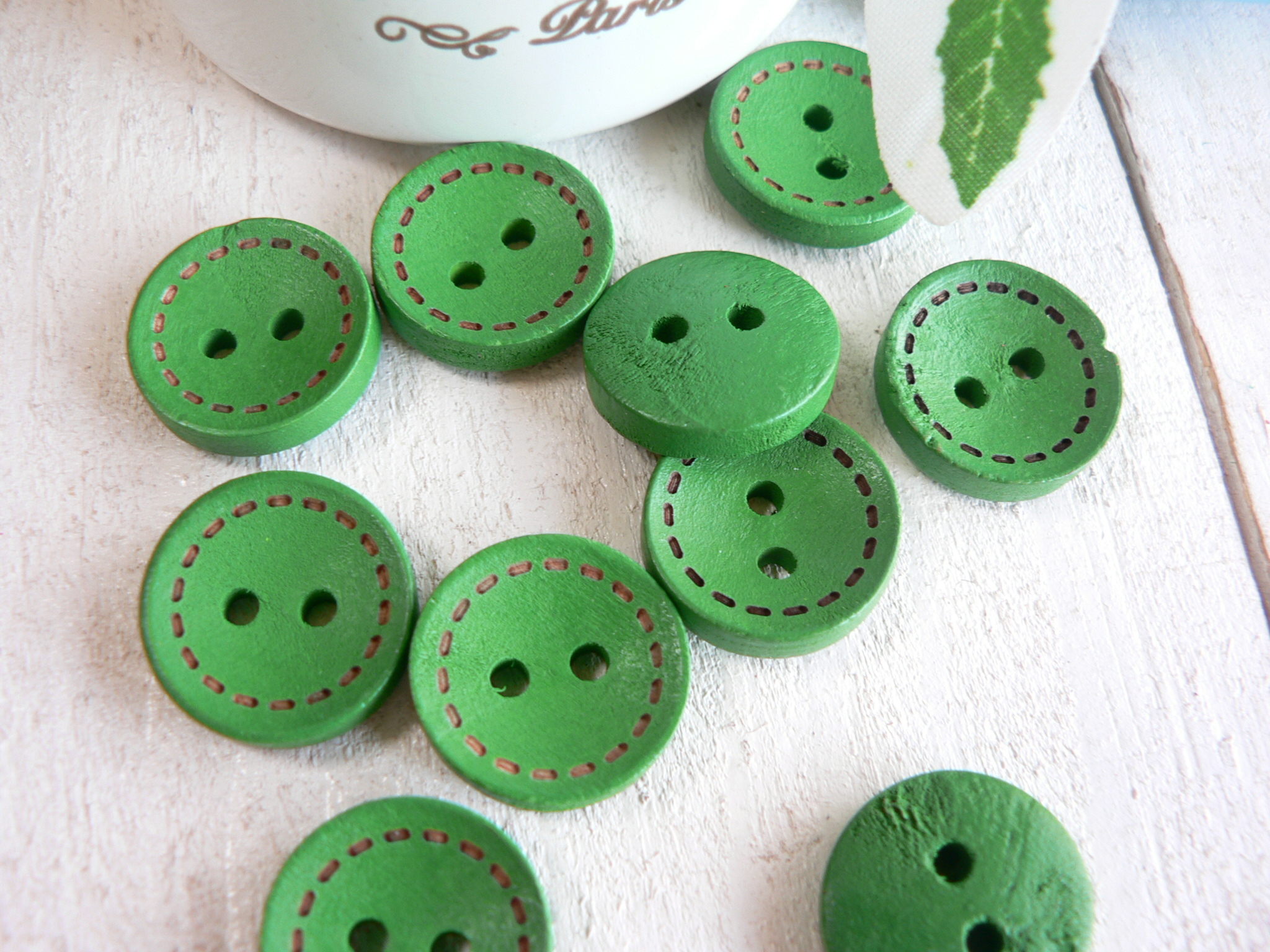 ボタン 木のボタン ステッチ 15mm ウッド 手芸 10 個 緑 #1327