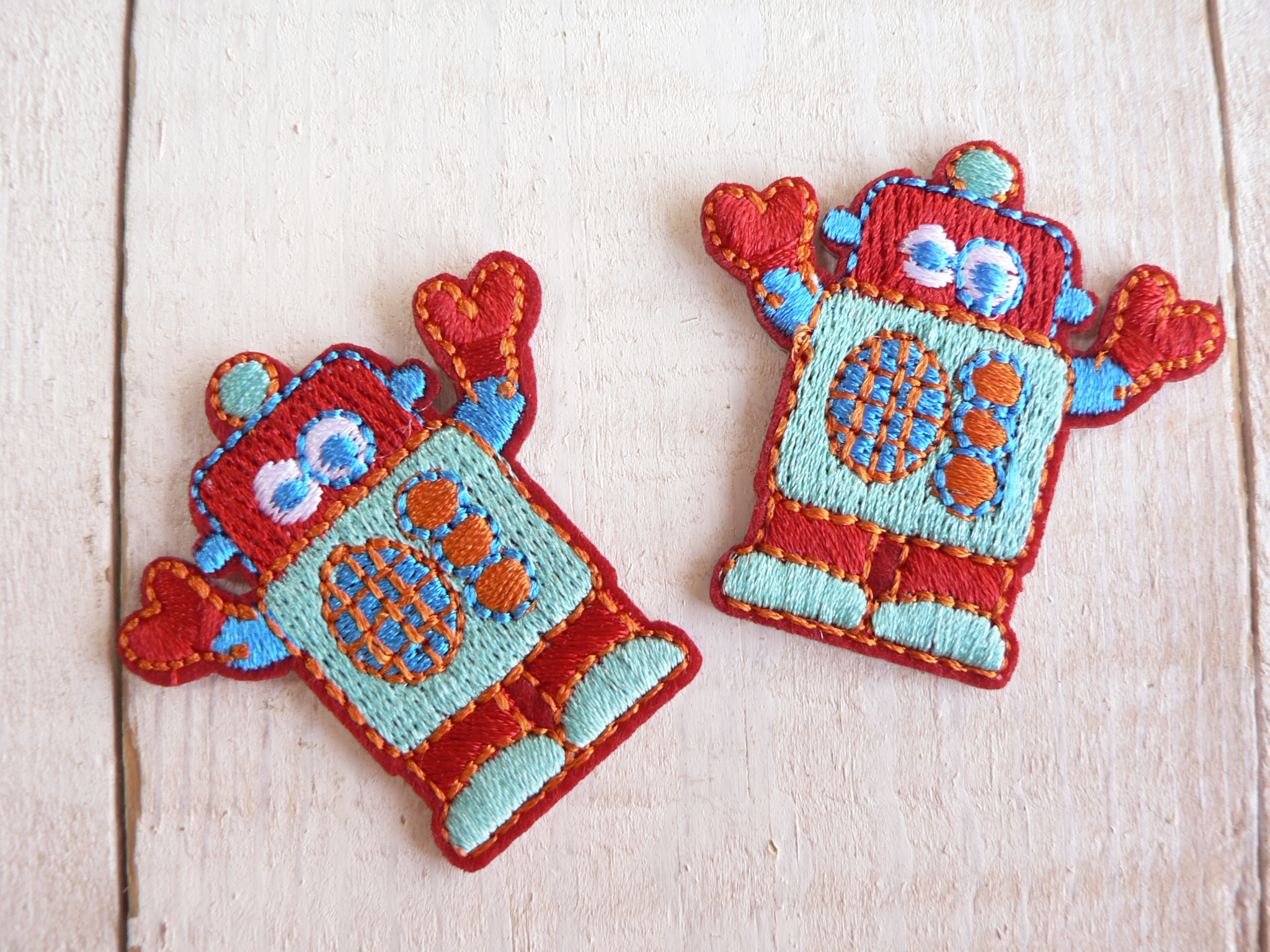 ワッペン ロボット 赤 小 アイロンワッペン 2枚セット #1401