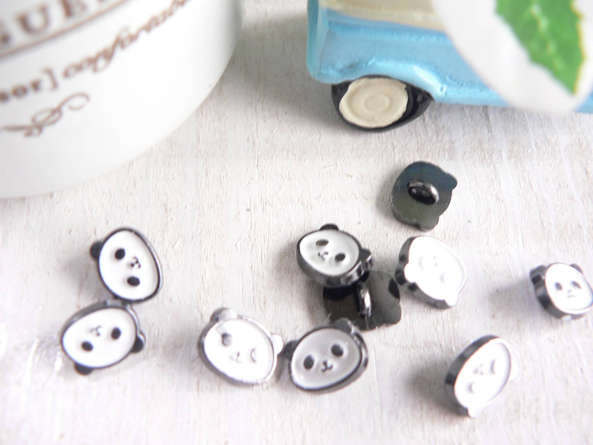 ボタン パンダ 10個 黒 足つき 人形 ドール #1438