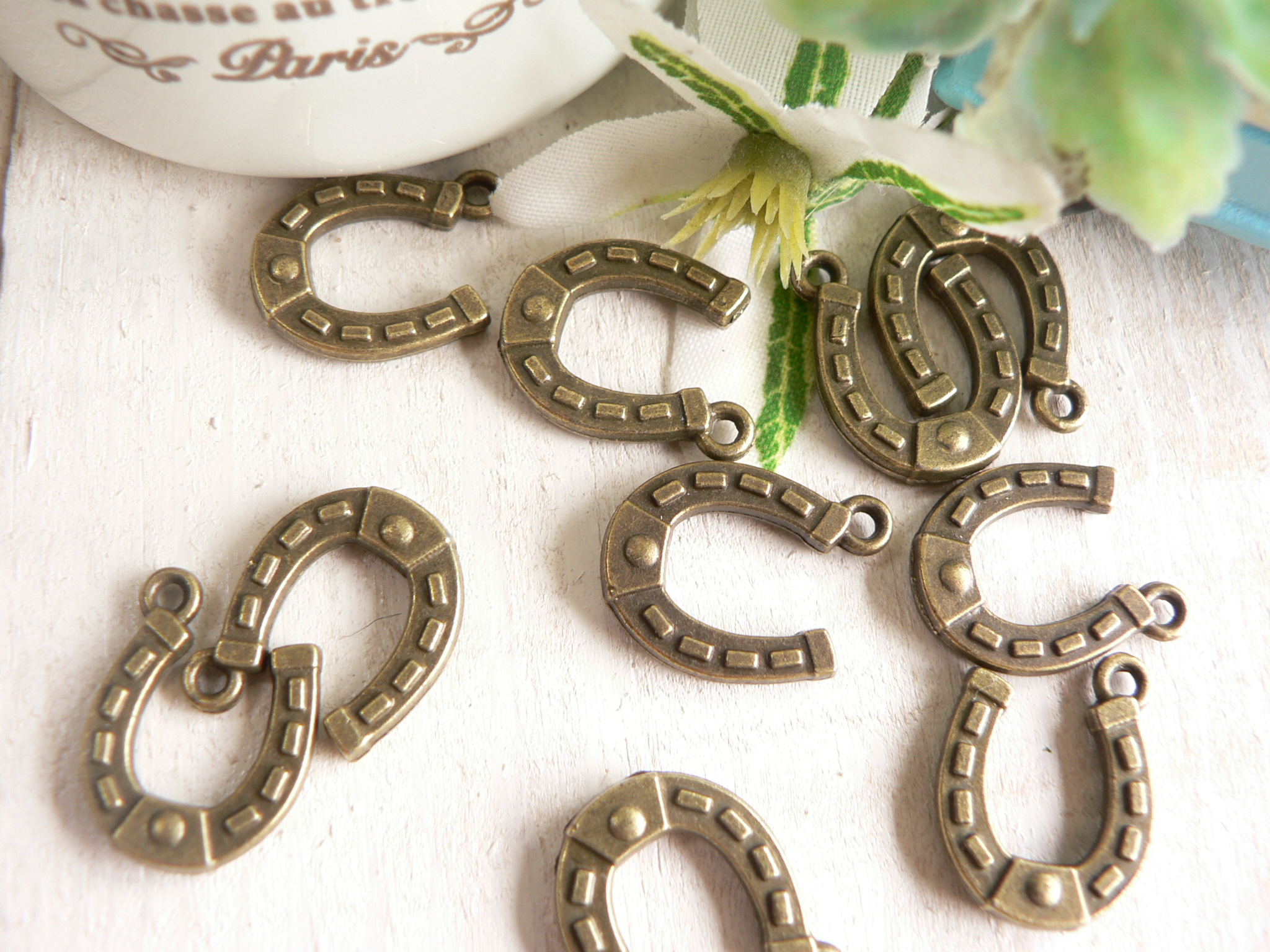 チャーム 蹄鉄 (#2740) 10個 馬 ホースシュー 銅 ブロンズ 手芸 パーツ ハンドメイド 材料