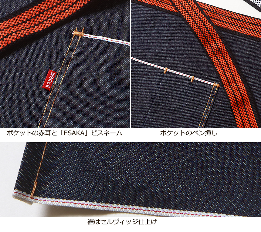 江坂ジーンズ セルヴィッジデニム・前掛けエプロン・オレンジ紐 日本製 富士山 E-007昭和レトロ横丁シリーズ made in japan FUJI