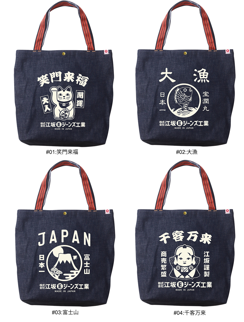 「江坂ジーンズ・レトロ横丁シリーズ」made in Japanどこか懐かしい、雅なレトロ柄を中心に色々なデザインを展開中です。