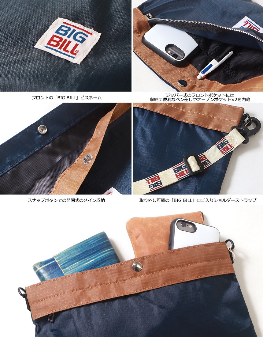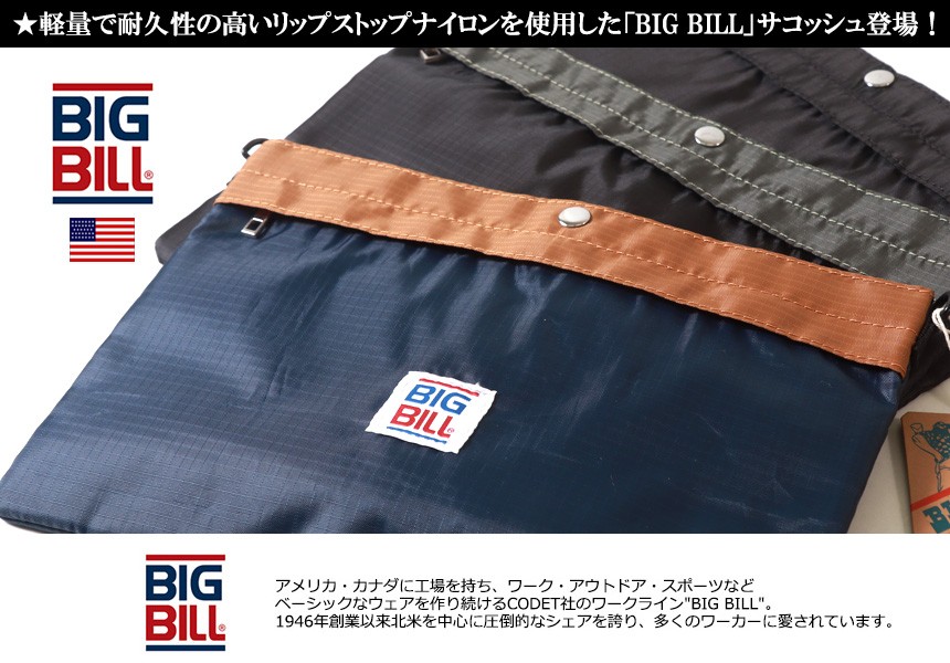 【冬物クリアランス】BIG BILL リップストップ生地 ワンポイントデザイン サコッシュ ミニバッグ
