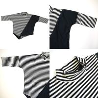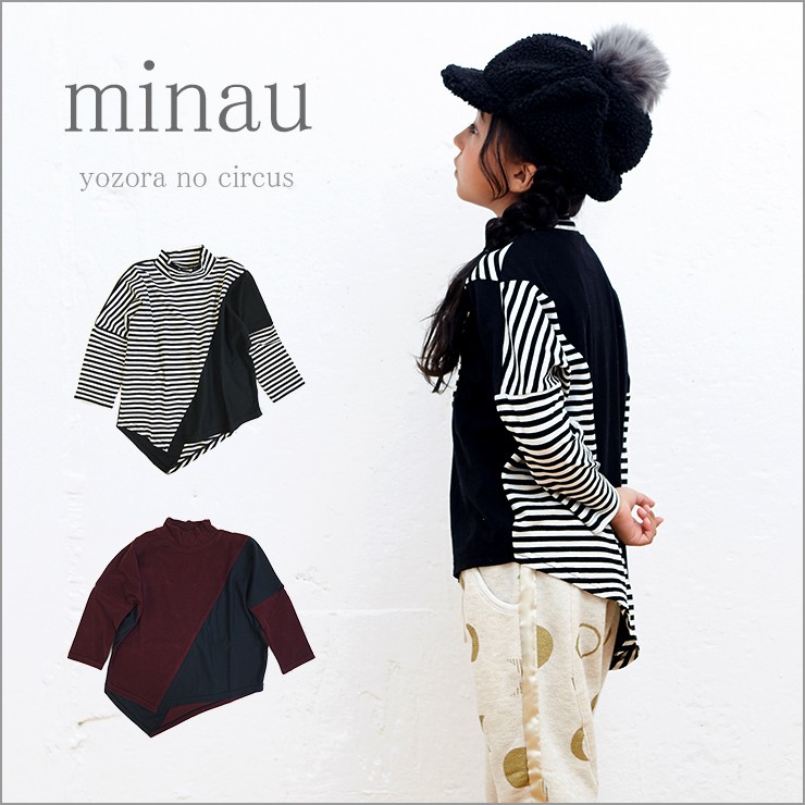 閉店セール 子ども服 トップス minau キッズ 変形 ナチュラル 個性的 日本製 あったか素材 アシンメトリー ボーダー モノトーン