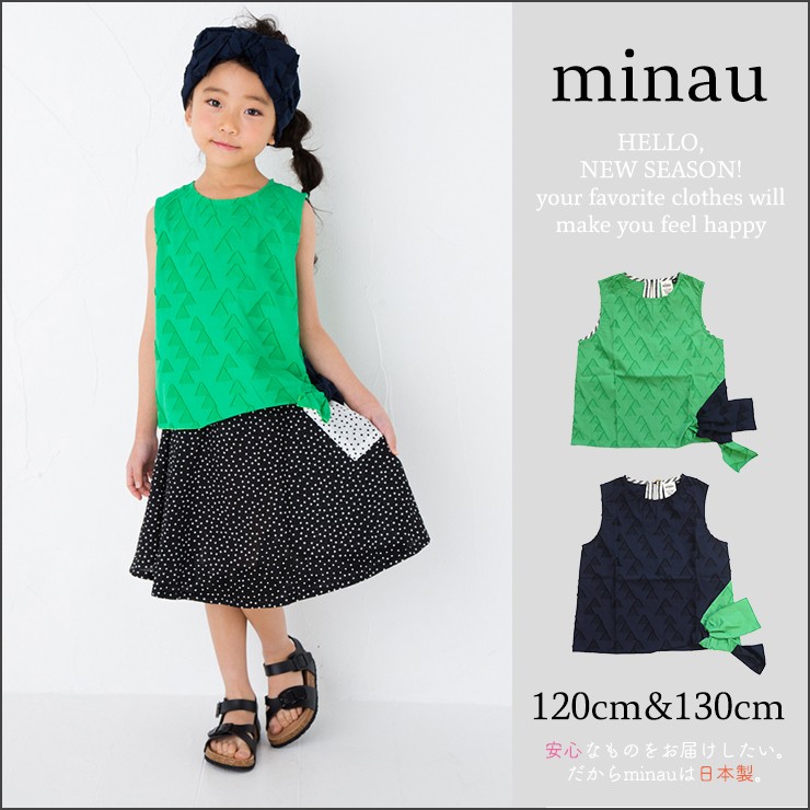 閉店セール 子ども服 女の子 トップス 120cm 130cm カシュクール タンクトップ 三角 山 リボン 春夏 キッズ 変形 ナチュラル 個性的 日本製