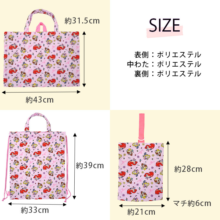 ディズニー プリンセス 入園入学セット 3点セット 女の子 アナと雪の女王 ラプンツェル アリエル ベル レッスンバッグ ナップサック シューズバッグ
