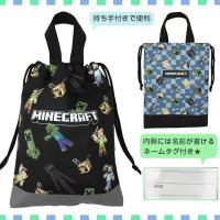 人気ゲーム、マインクラフトの持ち手付き巾着が登場。クリーパーなど、キャラクター達のかっこいい総柄デザイン。