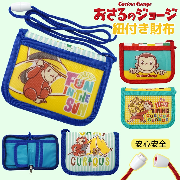 おさるのジョージ 財布 子ども ひも付き キャラクター ウォレット ネックストラップ 首かけ キッズ 小銭入れ 二つ折り財布 男の子 子供用財布