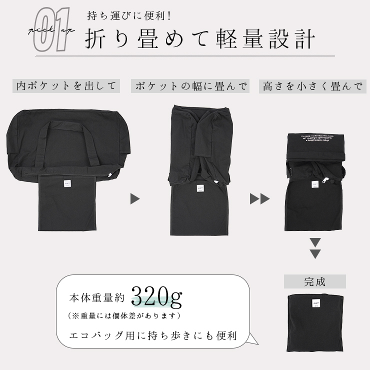 大容量ながら、内側のポケットに折り畳んでコンパクトに収納できるのが嬉しいポイント!
