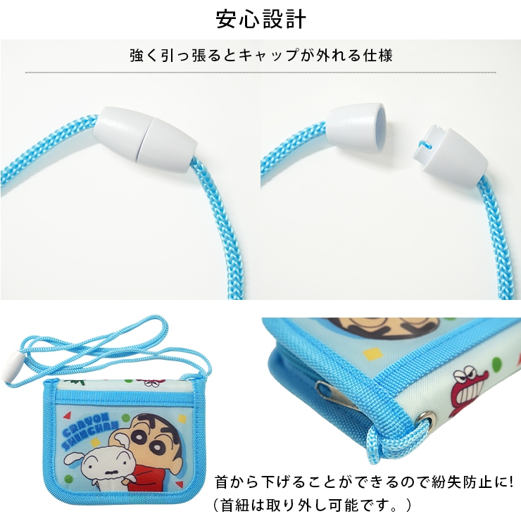 クレヨンしんちゃん 財布 子ども ひも付き キャラクター ウォレット ネックストラップ 首かけ キッズ 小銭入れ 二つ折り財布 男の子 子供用財布