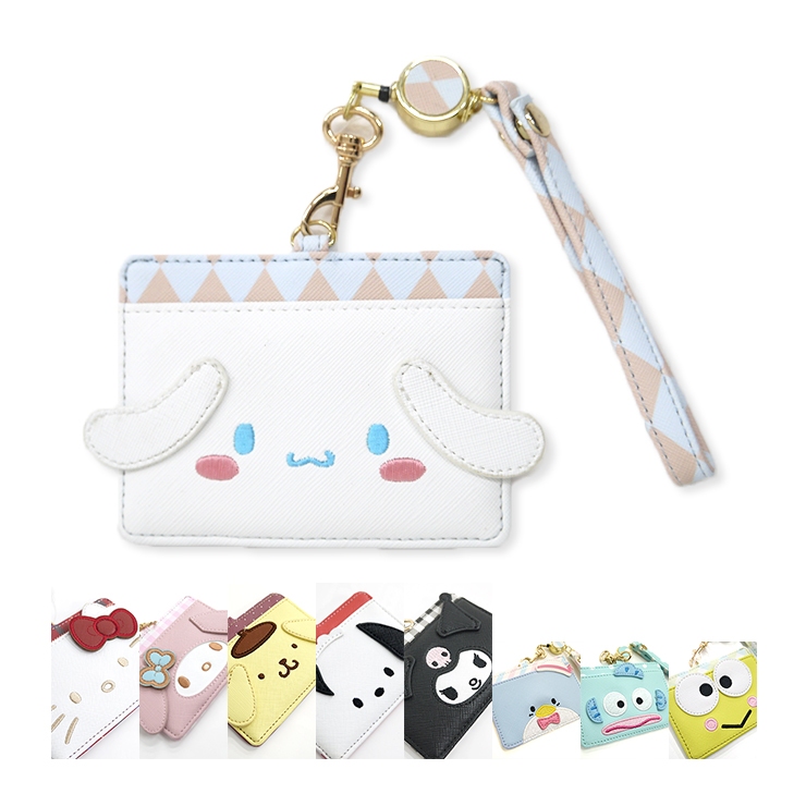 サンリオの人気キャラクター、ハローキティ・マイメロディ・ポムポムプリン・シナモロール・クロミ・ポチャッコの顔が立地的に大きくデザインされたなんともキュートリール付きパスケースの登場です。お耳やリボンが立体的&お顔のパーツは刺繍など、細部までこだわりあふれるデザインです。キュートで個性的な定期入れをお探しの方におすすめです!