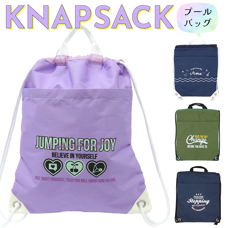 ノンキャラクターで使いやすい!ポリエステル製のナップサックの登場です。素材にはポリエステルが使用されているのでプールバッグ・スイムバッグ・ビーチバッグとしてもおすすめ♪小学校、中学校のプールの授業や、海や川などレジャーにもおすすめのサマーバッグです☆
