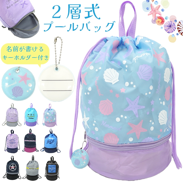 プールバッグ 二層式 スイムバッグ ナップサック キッズ 男の子 女の子 水着入れ プール バッグ 着替え 巾着型 キッズ 小学校 水泳 授業
