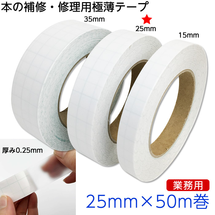(2100-6206)本の補修テープ ページヘルパー 25mm幅 50m巻 破れたページを直す 絵本 教科書 書籍 雑誌 本の修理 修繕用 製本グッズ 図書館御用達 プロ仕様
