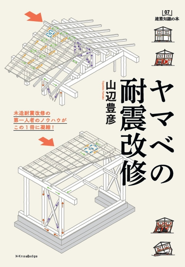 発行:エクスナレッジ著者:山辺 豊彦在来軸組構法のベストセラー実務書『ヤマベの木構造』の著者である、山辺豊彦氏が手掛ける耐震改修の本です。現在、南海トラフの海溝型巨大地震や首都直下地震については甚大な被害が予想され、中古の戸建て住宅で耐震改修などの対策が急がれています。しかし新築の場合のように明確な構造基準といったものがないため、「戸建て住宅のリノベーションでは耐震改修も一緒にやりたいが、基礎や柱、梁などをどのように補強・改修したらよいのか分からない」といった声をよく聞きます。この本では、構造を考える際に基本となる「建物にかかる力の流れ方」、「意匠プランごとに注意すべき構造ポイント」「基礎、軸組など部位ごとに注意すべきポイント」などを、豊富な写真やイラスト、模型で分かりやすく解説します。そして、門外不出とされてきた、基礎や軸組、耐力壁、接合部など、耐震改修における基本納まり図を詳しい解説付きで掲載!目からウロコの納まりが満載です。さらに、中古住宅でよく見られる築40年代の住宅の改修事例、そして江戸時代からの住宅の改修事例を、豊富な図面と写真で詳しく解説!!実践に即した内容となっています。