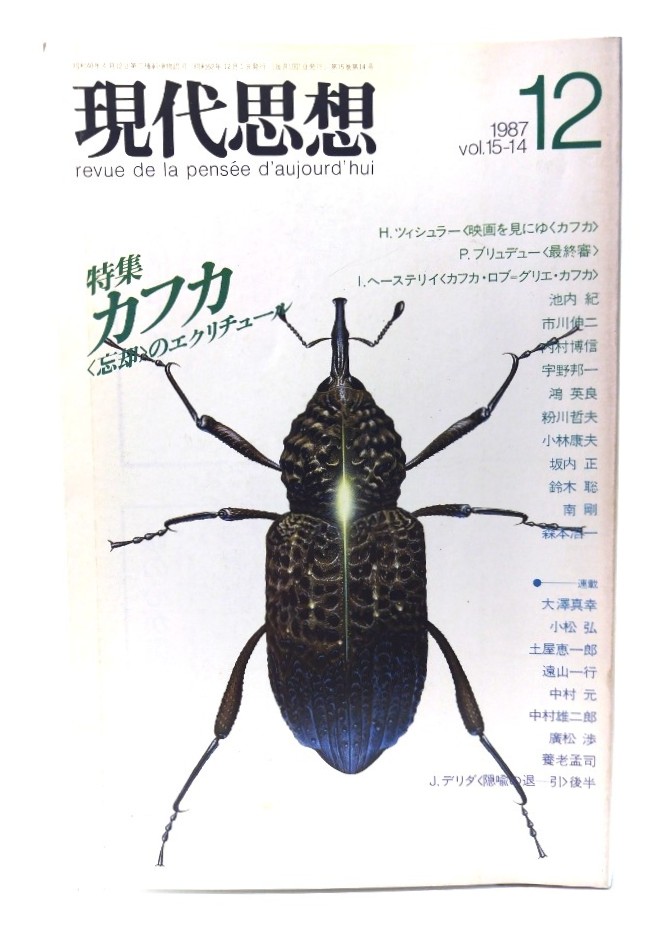 ◆「現代思想 1987年12月号 特集=カフカ 〈忘却〉のエクリチュール /青土社」