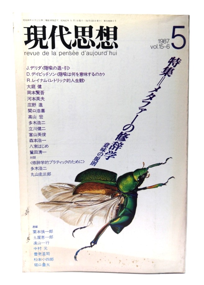 ◆現代思想 1987年5月号 特集=メタファーの修辞学-意味の規則/青土社