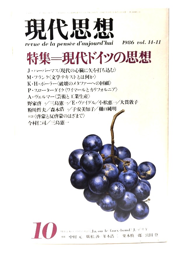 ◆「現代思想 1986年10月号 特集=現代ドイツの思想/青土社」