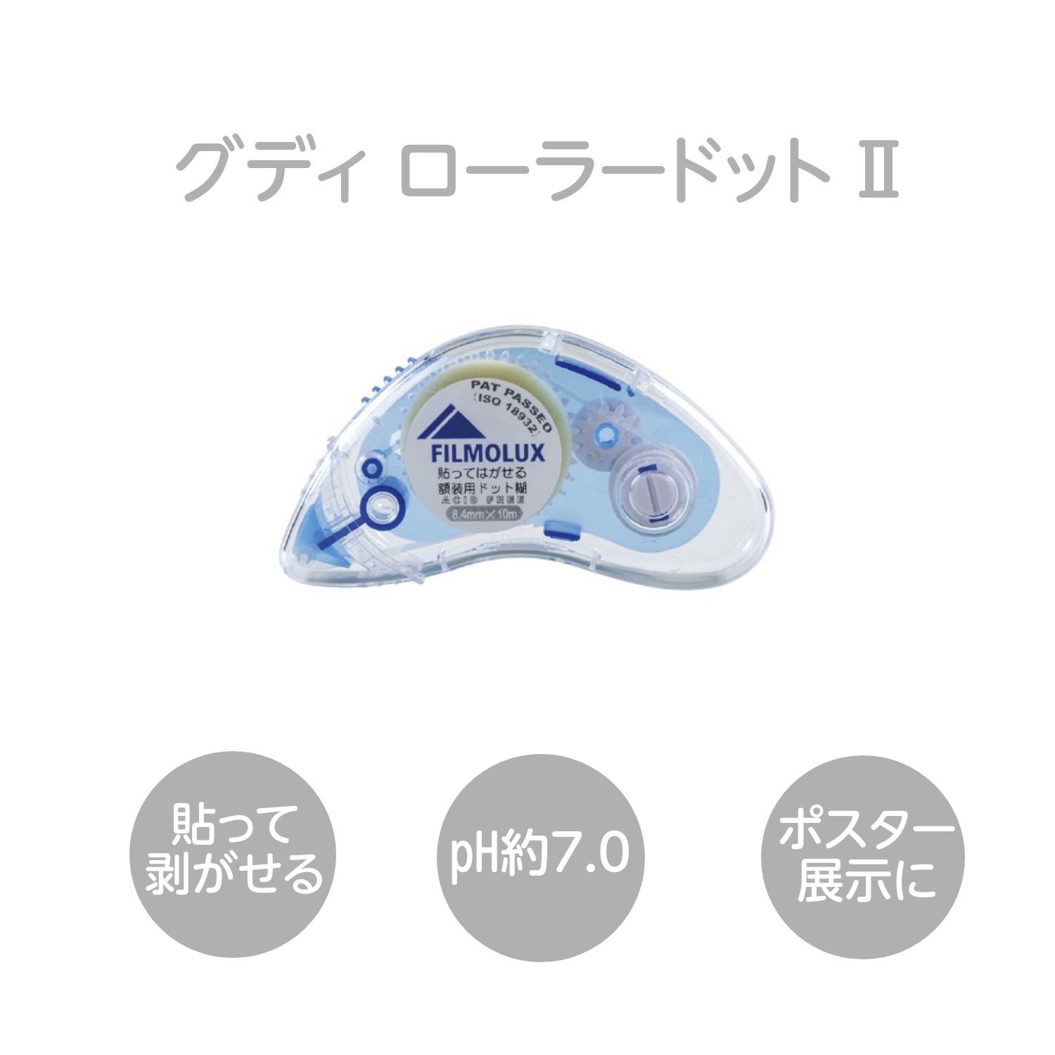 貼って、剥がせて、貼り直しができるテープ糊です。糊が残っても消しゴムで落とせます。