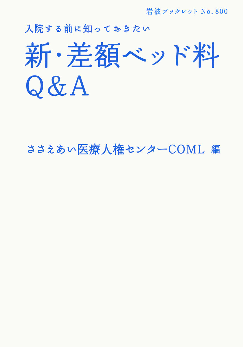 キーワード:新・差額ベッド料Q&A入院する前に知っておきたいささえあい医療人権センターCOML しんさがくべつどりようきゆーあんどえーにゆういん シンサガクベツドリヨウキユーアンドエーニユウイン ささえあい/いりよう/じんけん ササエアイ/イリヨウ/ジンケン