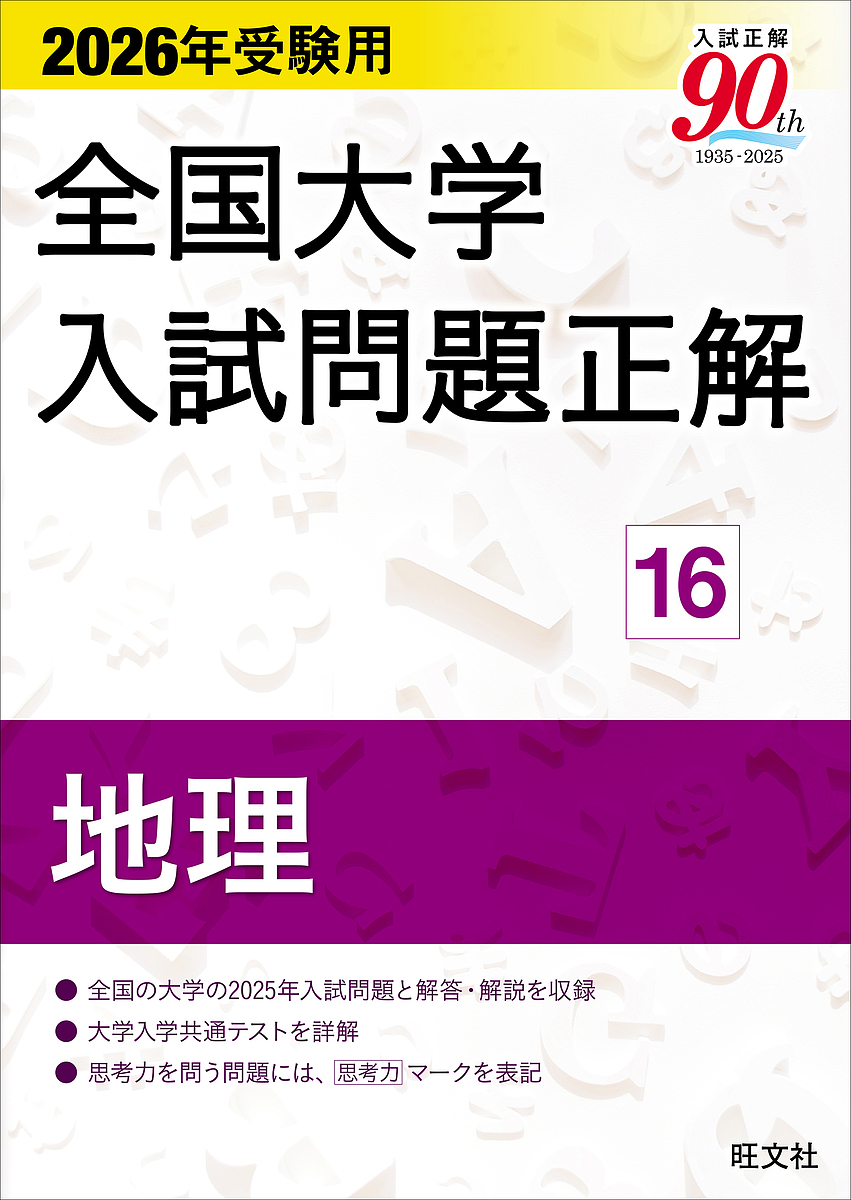 2025年に実施された全国のおもな国公私立大学と大学入学共通テストの地理の問題を収録し、研究と解答を詳細に掲載しています。また、「2025年の出題傾向と2026年の予想」、「内容別問題一覧」も収録しています。大学受験対策書としてだけでなく入試資料としても高い評価を得ています。