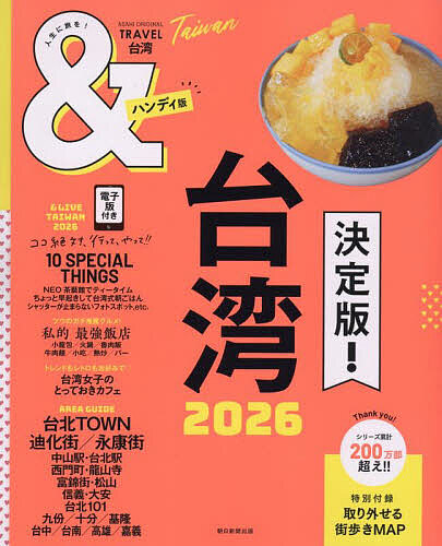 好評「&TRAVEL」シリーズの最新「台湾」2026年版が登場! 巻頭特集は現地インスタグラマーおすすめの「ココ絶対行って、やって!!」。グルメや夜市、カフェ情報も満載です! 取り外せる街歩きマップ&無料電子版付き。